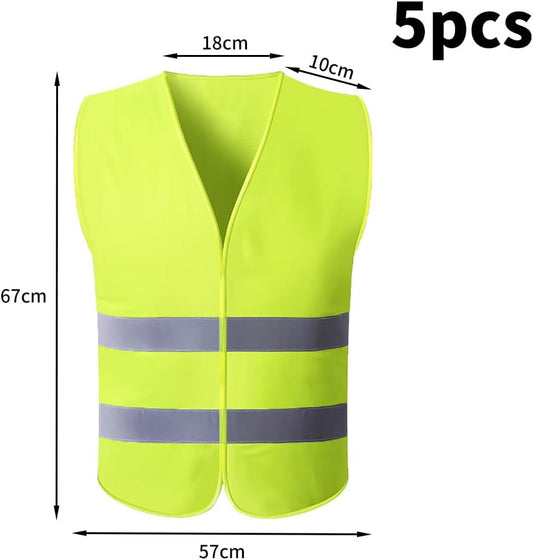 Warnwesten Auto, 5 Stück Warnweste Pannenweste, Reflektorweste Auto Erwachsene Sicherheitsweste Waschbar Warnweste Für Autofahrern Fahrern Arbeitskräften Erwachsene 67 X 57 Cm Grün